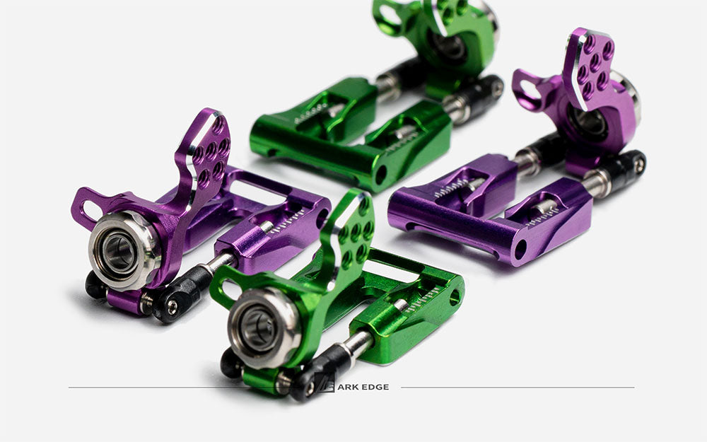 features a CNC-machined 7075 aluminum structure with a titanium bearing cup design matching the front system. Indexed toe adjustment and multiple geometry mounting points enable precise, repeatable tuning and improved rear-end stability under acceleration.